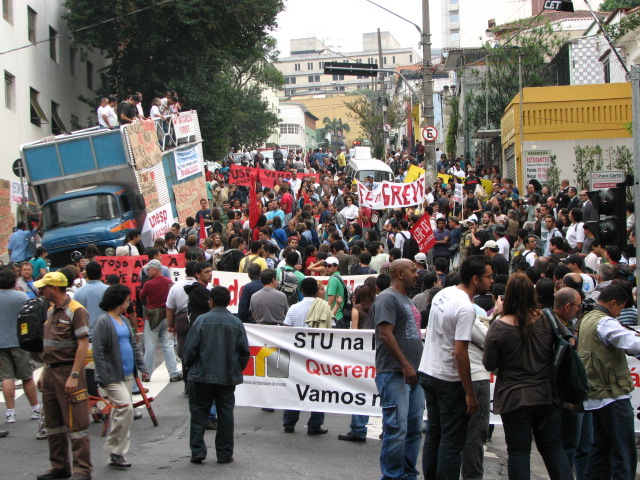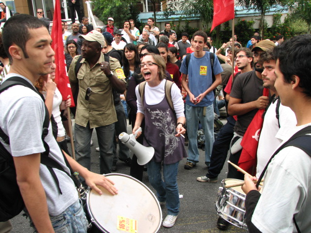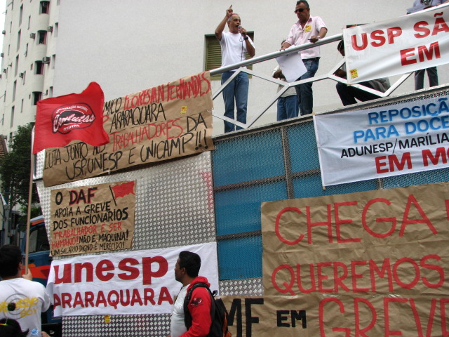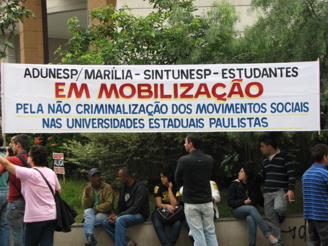 Manifestação em São Paulo durante a reunião entre o Fórum das Seis e o CRUESP.