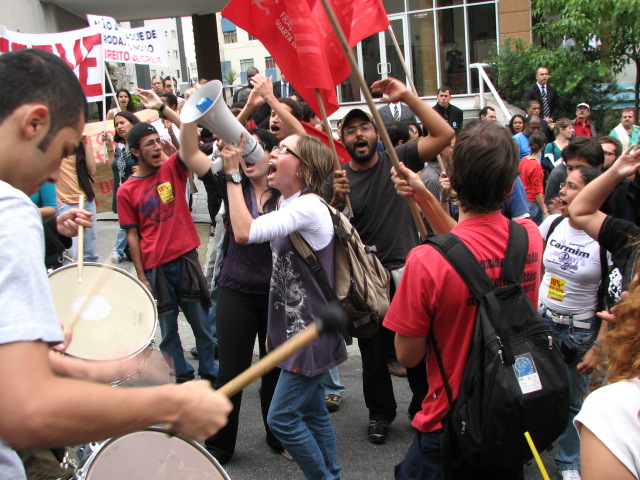 Manifestação em São Paulo durante a reunião entre o Fórum das Seis e o CRUESP.