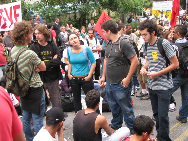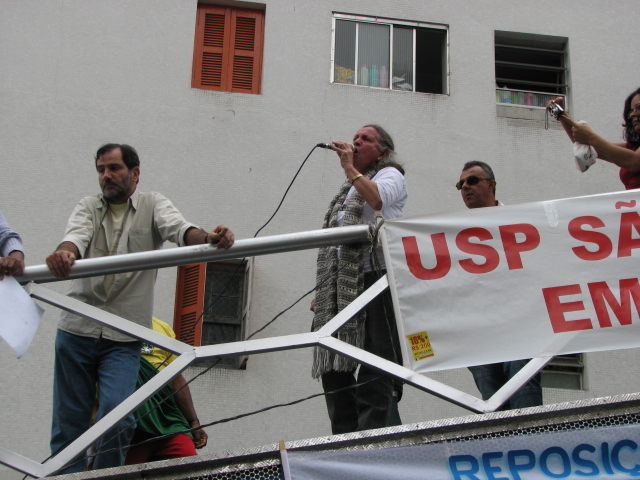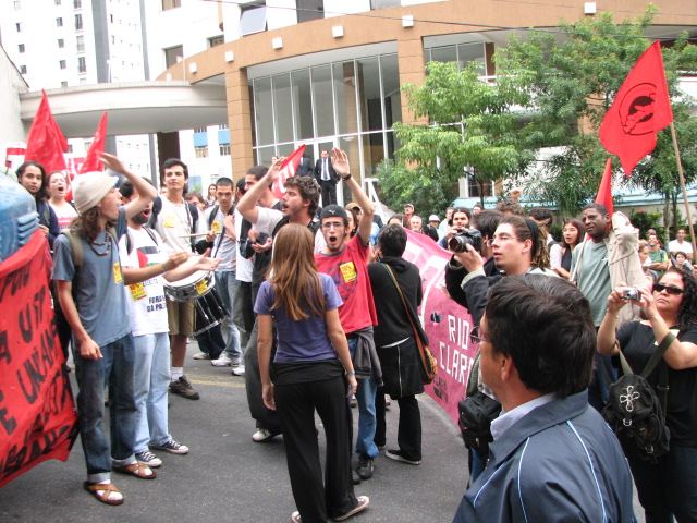 Manifestação em São Paulo durante a reunião entre o Fórum das Seis e o CRUESP.