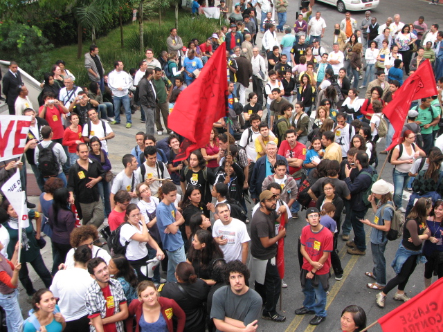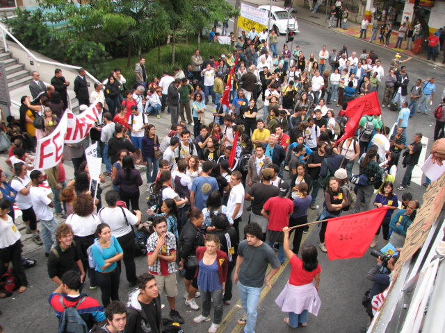Manifestação em São Paulo durante a reunião entre o Fórum das Seis e o CRUESP.