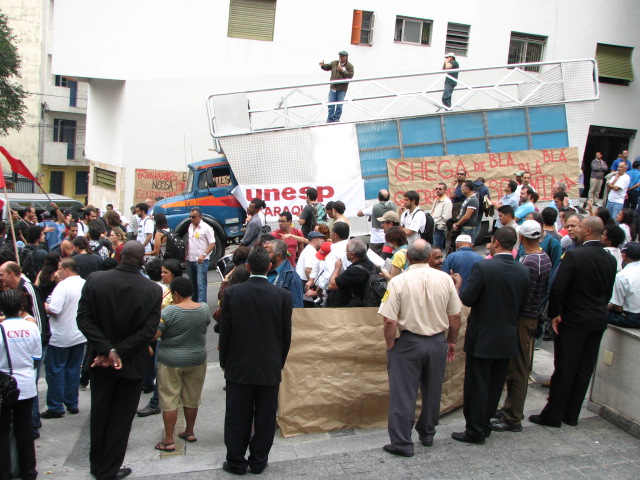 Manifestação em São Paulo durante a reunião entre o Fórum das Seis e o CRUESP.