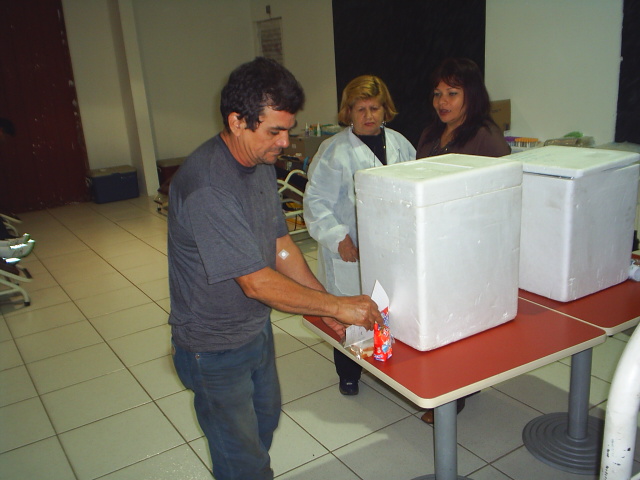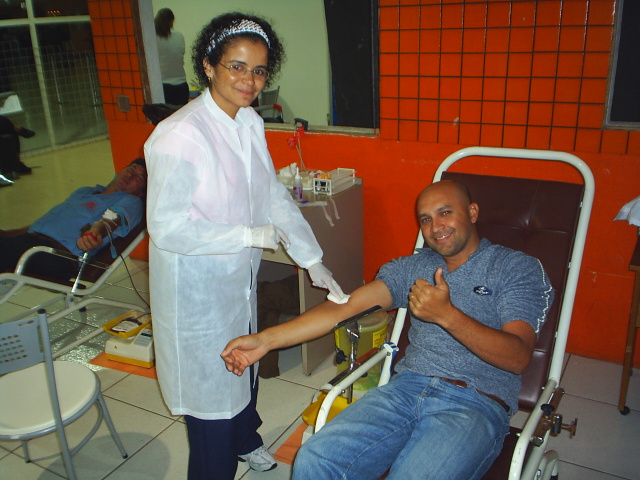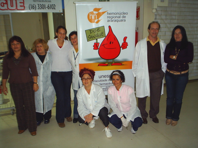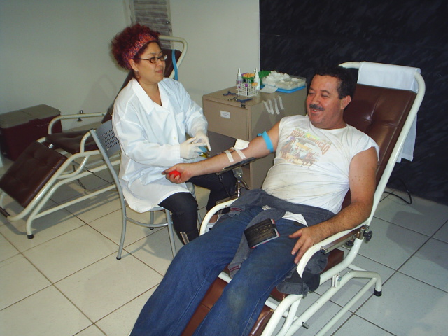 | 5-Após doação é fornecido lanche ao doador | 6-Equipe responsável pela coleta: Maria Betânia da Silva, Olga Gomes, Christiane Viola, Cristina Zaniollo Gibran Di Nardo, Marcy Kitamura, Cristiane Machado, Dr. Reinaldo Bonfá e Rosangela Reis |