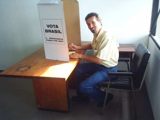 | 11-Aluno de Graduação exercendo o direito de votar | 12-Professor depositando o seu voto na urna |