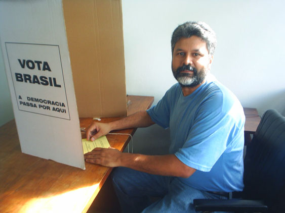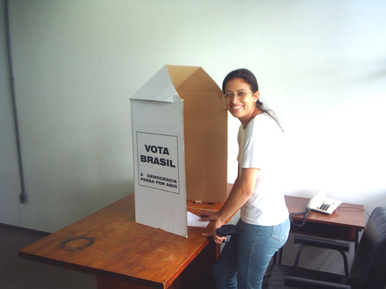 | 23-Aluna de Pós-Graduação votando | 24-Professora assinando a lista de presença |