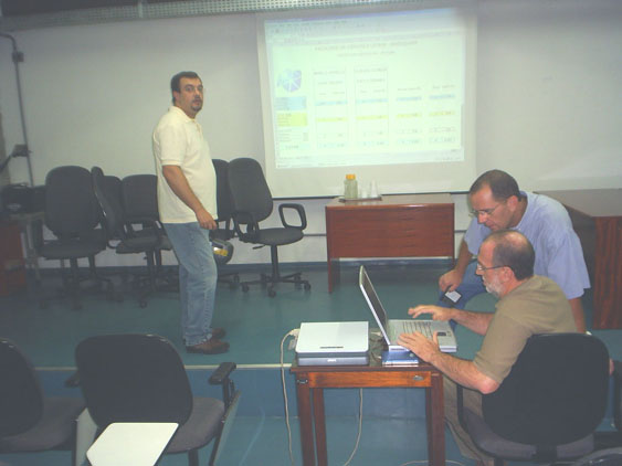 1-Professor e servidores verificando computador que será utilizado na apuração dos votos |