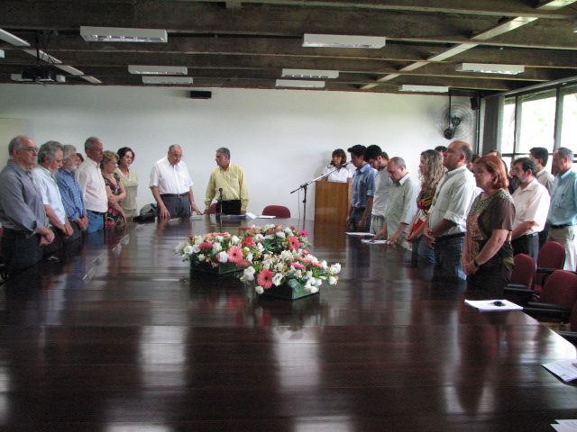 22-Ex-diretores, membros da Congregação e convidados ouvem o Hino Nacional |