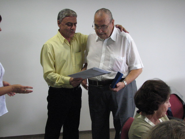 42-Diretor atual entrega placa e documento a ex-diretor |
