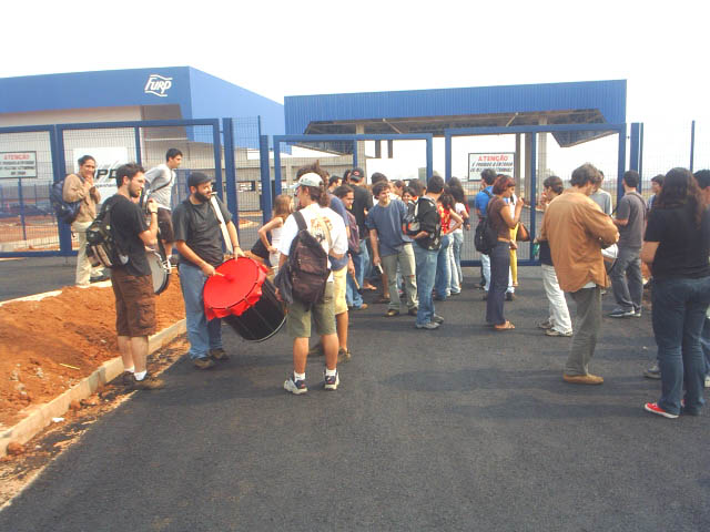5-Alunos permanecem do lado de fora da fábrica aguardando autorização para poderem entrar |
