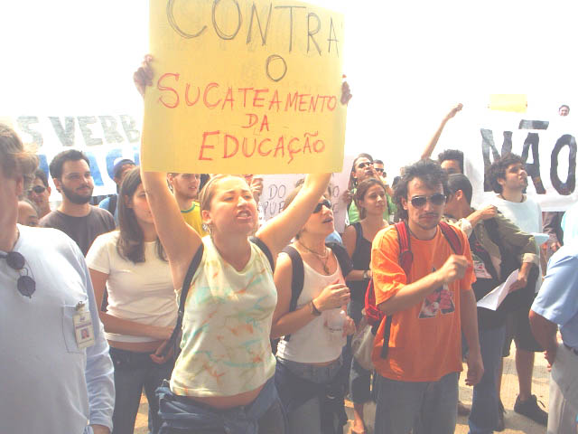 59-No local da cerimônia alunos levantam seus cartazes e faixas |
