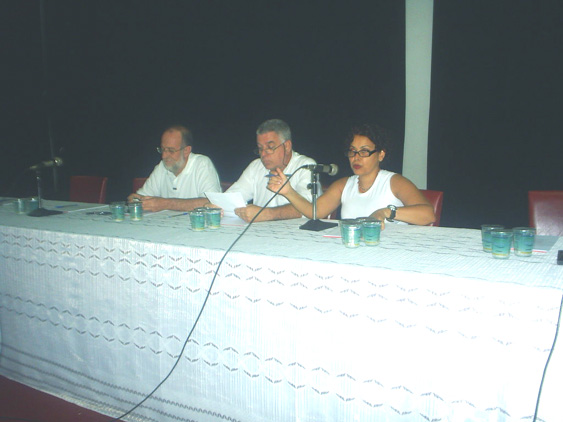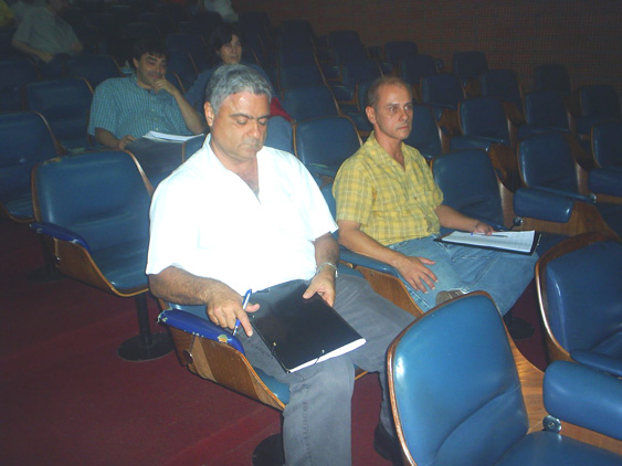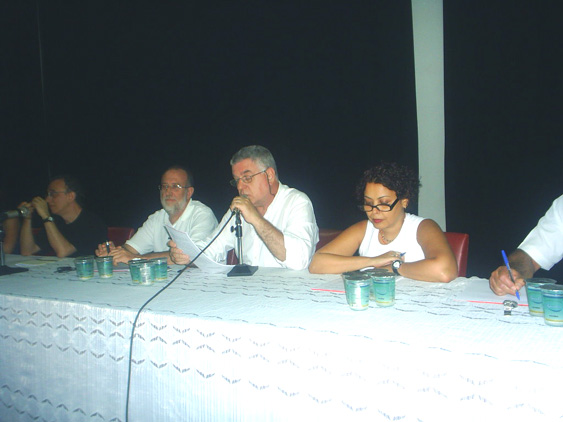| 5-Membro da Comissão Eleitoral dando início ao debate | 6-Membro da Comissão eleitoral informando as normas do debate |