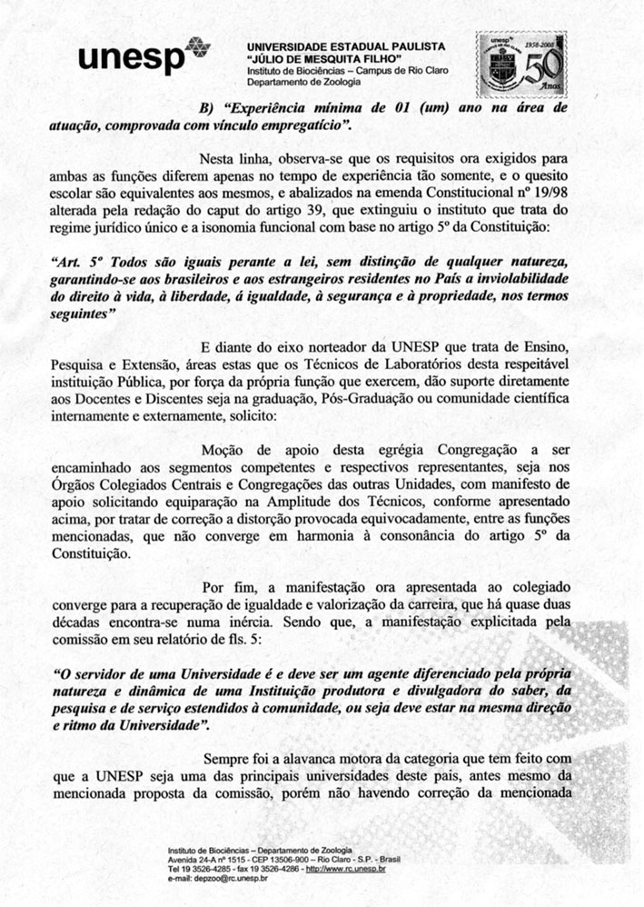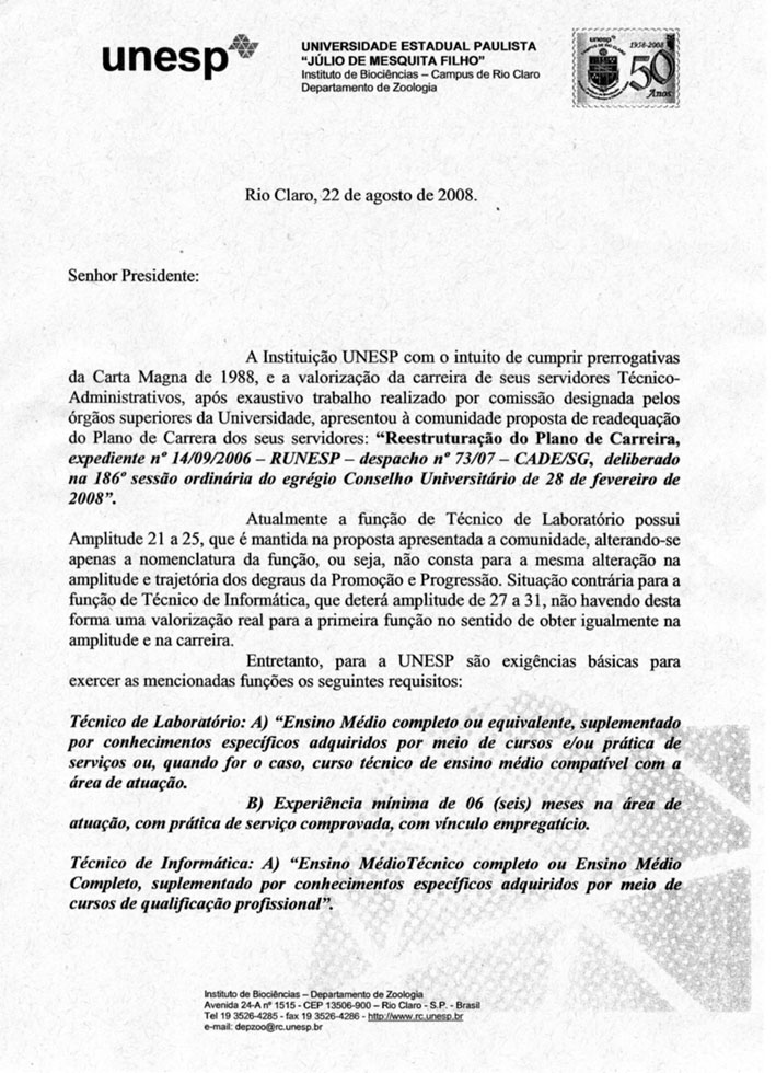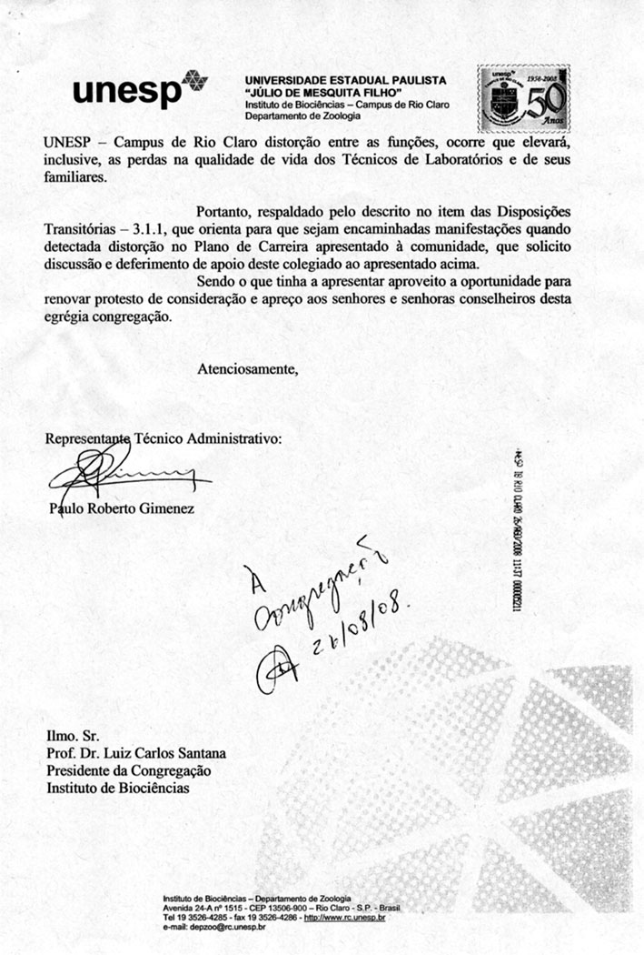 Documento enviado a Congregação do
