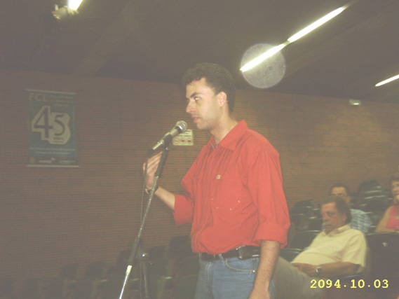 8-Aluno do Centro Acadêmico de Administração Pública, da Faculdade de Ciências e Letras, fazendo pergunta ao palestrante |
