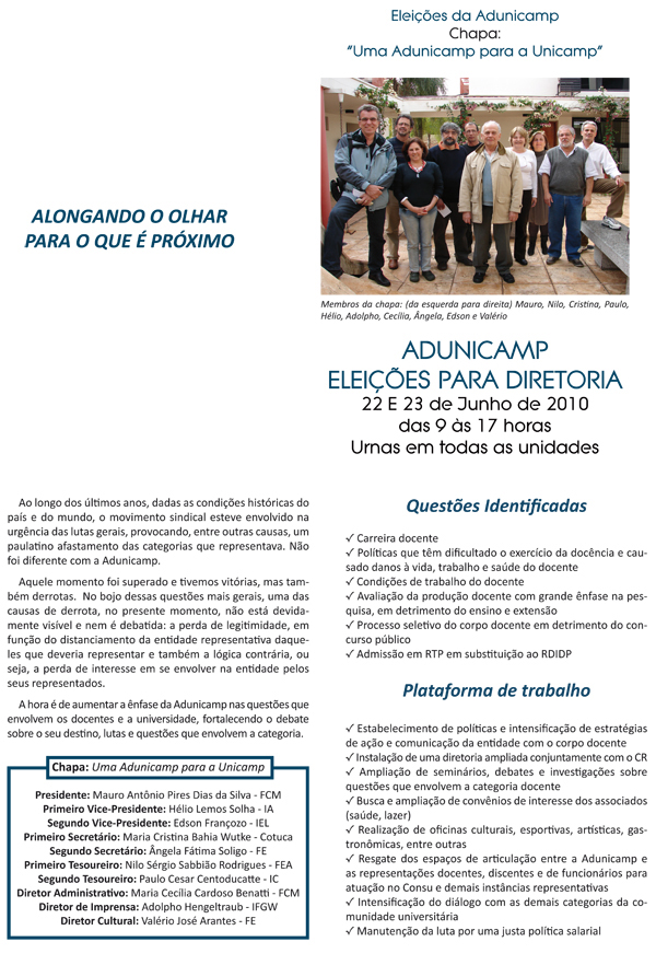 segue o programa da Chapa: “Uma Adunicamp para a Unicamp” ![]() |