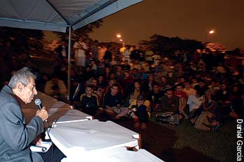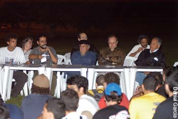 Em meio a um frio inesperado, num final de tarde de verão, a Adusp, o DCE e o Sintusp deram início, no dia 2/03, no gramado da Reitoria, a uma campanha pela democratização da universidade, que compreende eleições diretas paritárias para Reitor e mudanças no estatuto autoritário da USP. O evento fez parte da programação da Calourada Unificada, organizada pelo DCE para recepcionar os ingressantes de 2005. O ato foi acompanhado por cerca de 300 pessoas, a maioria calouros. Compuseram a mesa os professores Américo Kerr, presidente da Adusp; Luiz Menna-Barreto, do ICB; Aziz Ab’Saber, Francisco (Chico) de Oliveira e Paulo Arantes, da FFLCH; Lisete Arelaro, da Faculdade de Educação; e os diretores do DCE Maurício Costa e Márcio Rosa. Costa iniciou o ato com a leitura do documento "Diretas Já para Reitor", elaborado pelas três entidades. "A USP tem sua estrutura de poder baseada numa concepção elitista e vertical de Estado, que ganhou forma na autoritária década de 1930 e cristalizou-se em seus estatutos, anos depois, sob a vigência do AI-5, ato institucional que inaugurou a ‘linha dura’ como política oficial da Ditadura Militar. O ‘novo modelo’ de gestão da universidade extinguiu as todo-poderosas cátedras vitalícias e introduziu novos órgãos colegiados. Sofreu outras mudanças em 1988, mas sua estrutura de poder ainda é de um espantoso autoritarismo nobiliárquico", afirma o documento. O representante do DCE informou que até o final do ano uma caravana percorrerá todas as unidades da USP, para difundir a campanha entre a comunidade universitária. Inconstitucional Na sua exposição, o presidente da Adusp lembrou o artigo 206 da Constituição, que estabelece que o ensino público deve ter uma gestão democrática. Também citou a LDB, que reafirma a gestão democrática e estabelece que, nas eleições para Reitor, o peso dos votos dos docentes deve ser de 70%, enquanto que funcionários e alunos têm os 30% restantes. "A USP passa longe disso", disse o professor Kerr, ressaltando a própria contradição da LDB com a Constituição. De uma comunidade de 98 mil pessoas, apenas 1.400 podem votar no primeiro turno do processo de escolha do Reitor. No segundo turno, o número de eleitores cai para 350. O nome dos três primeiros colocados é enviado para o Governador do Estado, que escolhe entre os integrantes da lista o Reitor da USP para um mandato de quatro anos. Apenas professores titulares, que, nas palavras do presidente da Adusp, são "herdeiros das cátedras", podem se candidatar. Segundo ele, isso redunda numa mistura do conceito de progressão na carreira acadêmica com o poder na universidade e macula o próprio processo de concurso para titulares. "Para dirigir o país você não precisa ser doutor. Mas para dirigir a universidade, nem sendo doutor", destacou. Segundo o professor Menna-Barreto, uma conseqüência da restrição é que pessoas que não têm vontade de administrar acabam assumindo cargos que exigem essa competência. Para a professora Arelaro, a limitação ocorre pelo fato de que, geralmente, os titulares são docentes que já abandonaram qualquer projeto de mudança da universidade quando assumem o posto, contribuindo para manter o seu status quo. Realismo O professor Arantes, que já é aposentado, causou surpresa ao classificar de "surrealista" a proposta de eleições diretas para Reitor. Ele foi aplaudido pela platéia quando afirmou que "as eleições diretas para presidente [da República] não resolveram nada", numa referência à atual situação do país, que, segundo ele, "está se desmanchando". Destacou ainda a origem elitista da USP, fundada pela oligarquia paulista, que havia sido deixada de lado no cenário político nacional nos anos 30, com a ascensão de Getúlio Vargas ao poder. Ele falou a respeito da luta pela democratização da universidade que floresceu nos anos 60 até o decreto do AI-5, em 1968. Segundo o professor, os participantes do movimento possuíam uma meta mais ampla: a de levar a democracia a outros setores da sociedade. "Espero que vocês tenham esse plano B, porque eleger Reitor não é um plano de vida", disse aos estudantes. Já a professora Arelaro conclamou os estudantes a assumirem a luta pela democratização da universidade. "Quem pode liderar esse processo são vocês", afirmou, fazendo referência à atitude do movimento estudantil em iniciar o debate acerca das fundações com a Reitoria, após a ocupação da sala do Conselho Universitário em 2001. Contestando a fala do professor Arantes, o professor Chico de Oliveira disse que a USP é fruto não apenas das elites que a fundaram, mas das transformações que ocorreram no país, e defendeu o engajamento dos "estudantes na manutenção e na ampliação das poucas características e conquistas democráticas que a universidade representa no Brasil". Ele ainda afirmou que não