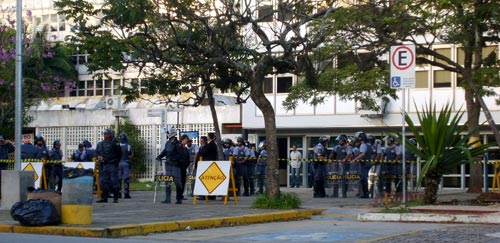 Bombeiros e vans de resgate alojaram-se na USP. A invasão da Força Policial na USP, ainda na