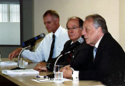 UNESP, no prédio da Reitoria. A definição de recursos para as Instituições de Ensino Superior é tida como fundamental para a manutenção da autonomia das universidades. A legislação sobre essa matéria (art. 207 da Constituição Federal, e art. 254 da Constituição do Estado de São Paulo) diz respeito à autonomia de gestão orçamentária e financeira e didático-científica, mas ela não está regulamentada no que se refere à definição da dotação. Apesar de o governador José Serra ter se comprometido a garantir o percentual de repasse às universidades, o secretário Pinotti manifestou a vontade de que isso seja estabelecido em lei. Todos os anos, os 9,57% do ICMS dependem de inclusão na Lei Orçamentária, que ocorre anualmente na ALESP (Assembléia Legislativa do Estado de São Paulo). O secretário e o reitor Marcos Macari acolheram a proposta do representante docente Cristiano Amaral G.Di Giorgi, da Faculdade de Ciências e Tecnologia (FCT), campus de Presidente Prudente, de se criar um Grupo de Trabalho (GT) formado por representantes das três universidades estaduais paulistas e das Secretarias de Educação e Ensino Superior, para debaterem formas de intervenção no Ensino Básico. O GT, segundo Pinotti, deve ser alocado em disciplina a ser criada dentro da Cátedra do Memorial da América Latina. “Acredito que essa seja a melhor forma de participação das universidades nas políticas governamentais para o desenvolvimento do Estado”, comentou. A Secretaria Estadual de Ensino Superior, criada pelo decreto no 51.461, de 1º de janeiro deste ano, tem entre as suas atribuições criar um sistema de Ensino Superior no Estado de São Paulo para integrar cerca de 500 unidades de diferentes níveis. “Ao criar esse sistema, temos a intenção de que essas unidades possam colaborar com o desenvolvimento do Estado de São Paulo, e do Brasil. As universidades públicas estaduais, que têm uma qualidade excepcional frente às demais – inclusive federais – possam ser referência desse processo de integração”, afirmou o secretário Pinotti. Para o reitor Macari, a criação da Secretaria possibilita uma maior interlocução do governo estadual com as Instituições de Ensino Superior. “Desde a autonomia das Universidades, o dialogo entre reitores e poder público estadual não tem sido freqüentes. A orientação do governo parece ter mudado com a instalação da nova Secretaria de Ensino Superior. Prova disso, é a presença inédita de um secretário estadual em nossa reunião”, disse. |
