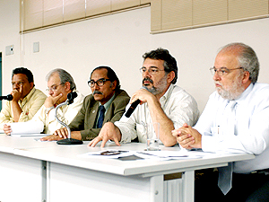 vida dos servidores da universidade.Tadeu Jorge fez uma explanação ao público presente, explicando o encaminhamento de todo o processo desde a criação do Grupo de Trabalho em 13 de outubro de 2005, por meio da portaria GR-134, que ficou responsável por analisar os programas existentes na área de benefícios e serviço social e propor ações capazes de aprimorar a atuação da universidade e estabelecer um planejamento das atividades futuras relacionadas ao tema. Segundo o reitor, as ações da nova área serão elaboradas, desenvolvidas, deliberadas e acompanhadas pelo Conselho Gestor, constituído por cinco comitês temáticos: Apoio à Saúde; Apoio aos Programas Especiais; Apoio ao Desenvolvimento Educacional; Apoio ao Desenvolvimento do Esporte e Lazer; Apoio ao Desenvolvimento Cultural. O Conselho Gestor está ligado diretamente ao Gabinete do Reitor e contempla também quatro áreas administrativas: Difusão e Relações Externas; Apoio Multiprofissional; Suporte Administrativo; Projetos e Programas. Além das parcerias com as unidades de ensino e pesquisa, o GGBS promoverá a geração de novos programas com parcerias e, ao mesmo tempo, divulgará e estimulará a participação de segmentos funcionais em programas já existentes. Além de Tadeu Jorge e José Ranalli, a mesa de abertura dos trabalhos contou com a presença do pró-reitor de Desenvolvimento Universitário, Paulo Eduardo Moreira da SIlva; o pró-reitor de Extensão e Assuntos Comunitários, Mohamed Habib e o secretário executivo do Conselho Gestor, Edison Lins. (Jeverson Barbieri) Fotos: Neldo Cantanti Edição de imagens: André Luis Pedro |