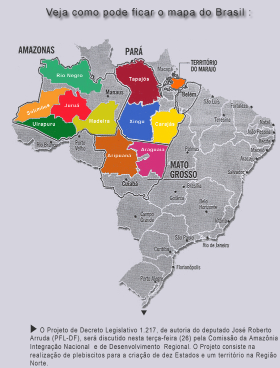 no atual Estado do Pará, além de 11 novos Estados. O Mato Grosso seria